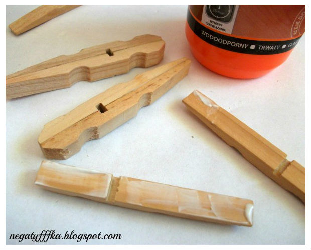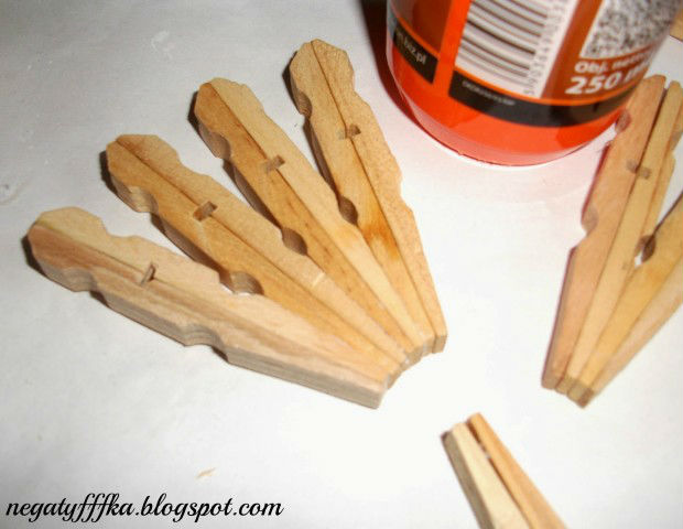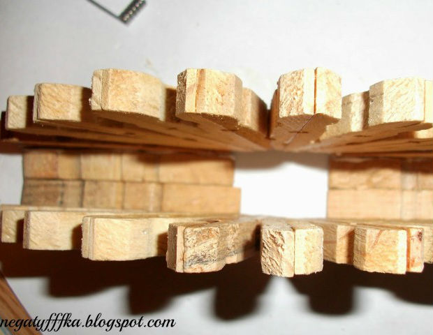 Para juntar os dois arcos e formar o porta guardanapos você deverá juntá-los com outros pregadores, como na imagem acima.