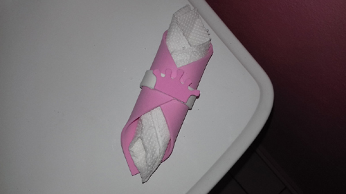 Entre as 23 ideias de porta guardanapos para festa infantil há o porta guardanapo de EVA, que pode tanto ter modelo para receber muitos guardanapos e ficar de pé e quanto ter modelo para ficar deitado. Um fácil modelo é o quadrado de EVA enrolado e possuindo detalhe relacionado à festa também feito de EVA.