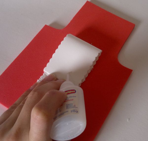 Em seguida, com o auxílio do adesivo instantâneo, cole a parte detrás e a parte da frente da peça.