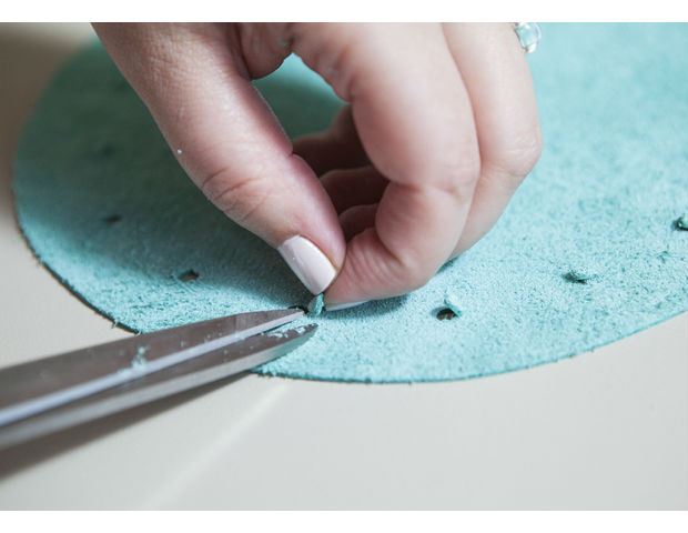Use o furador para fazer pequenos furinhos em todo o entorno do seu círculo.