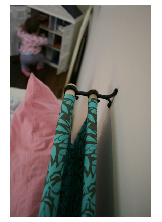 Logo, acrescente os 2 suportes para cortina no em cada ponta do tecido.