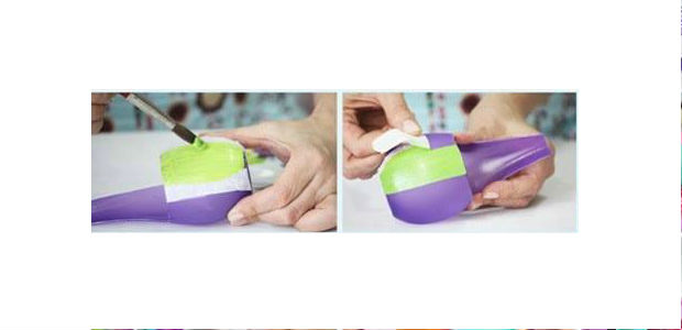 Acima você confere como dica uma técnica de pintura bem simples e que deixa o seu artesanato bem bonito: basta aplicar uma fita adesiva por entre os espaços da embalagem, pintá-la e, depois de seca a tinta, retirar a fita.