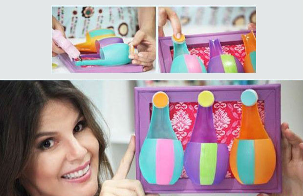 Você sabia que você pode fazer um lindo porta treco reaproveitando embalagens de cosméticos, como de shampoo, de creme hidratante etc.?