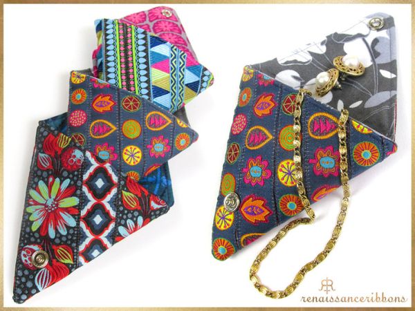 Créditos:http://www.sew4home.com/projects/fabric-art-accents/vintage-triangle-coin-pouch-renaissance-ribbons