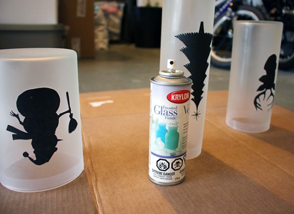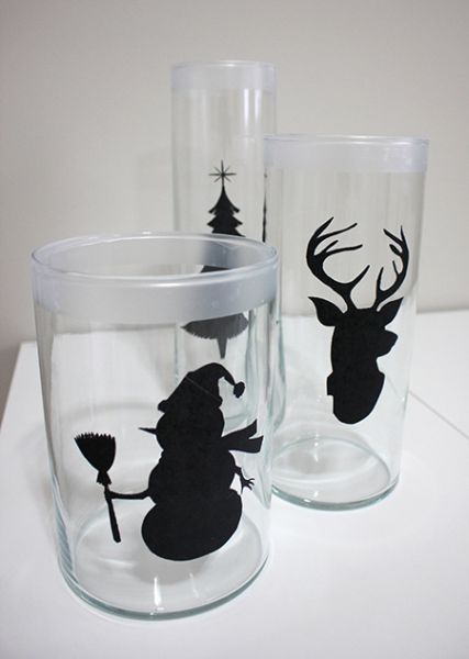 Em seguida, transfira o modelo escolhido do molde para o papel contact, recorte e fixe o desenho em seu copo, na parte que você desejar. Se quiser, pode também fixar fita adesiva na borda do copo.