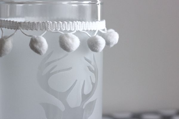 Em seguida, para finalizar a sua peça, cole o cordão de pompons na emenda da tinta, perto da borda do copo, e coloque a vela dentro. E está pronto!