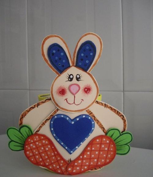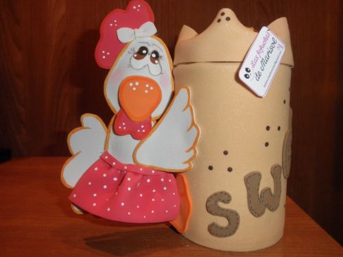 O EVA pode vir mesclado a outros materiais, como o biscuit. O EVA pode ser usado como detalhe ou até mesmo como apenas a faixa ou pedaço em que está escrito o nome do alimento que será armazenado no pote. E explore os vários tipos de EVA. Use os EVAs felpudos, os EVAs com glitter e os EVAs estampados para fazer os seus artesanatos.