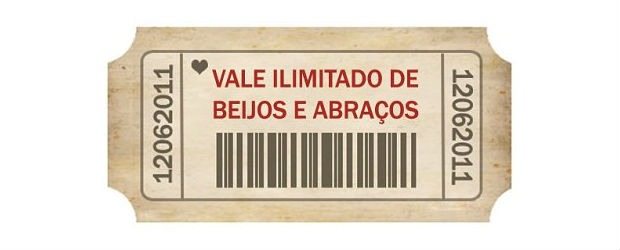 Dicas: vale abraço, vale beijo, vale 1 massagem, vale 1 lavagem de louça, vale 1 cineminha, vale 1 passeio romântico e muito mais!!!