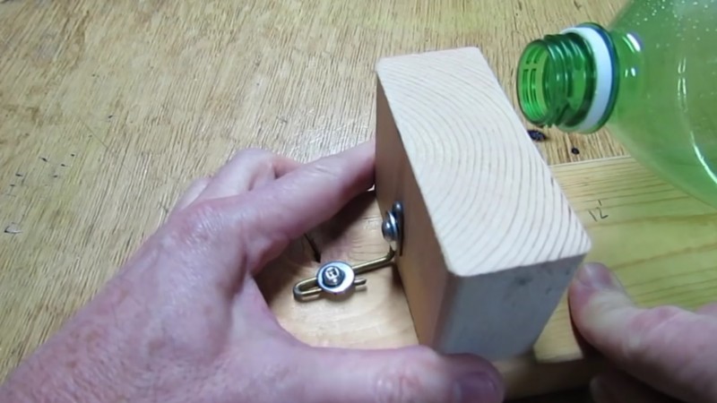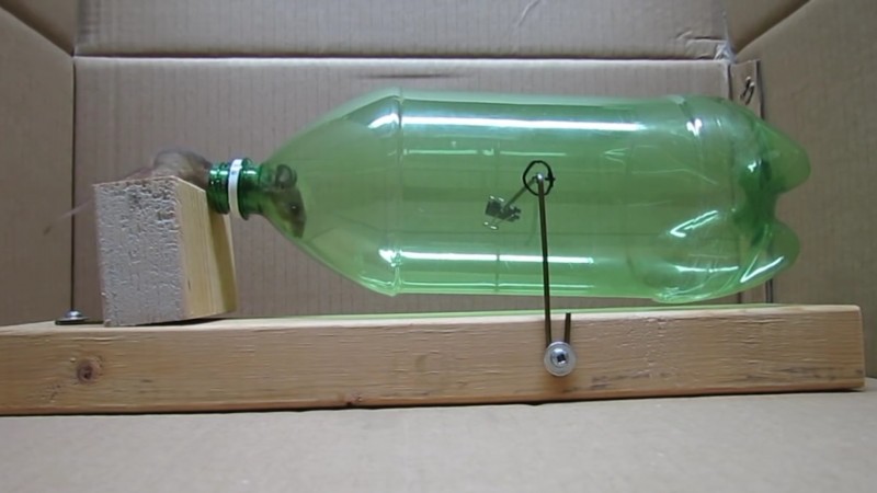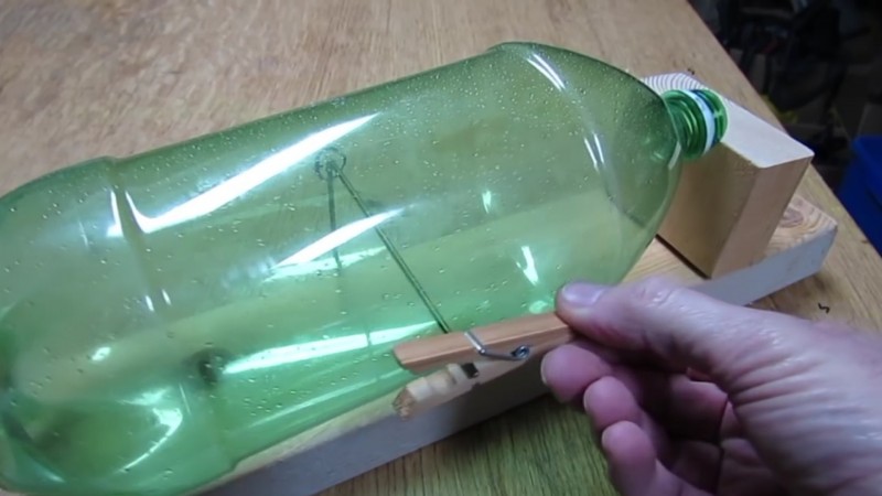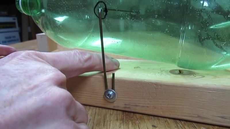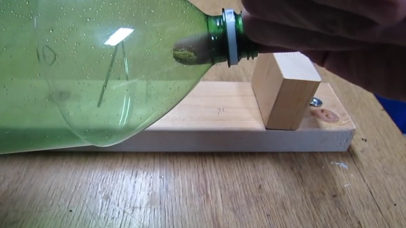 Encaixe o arame na garrafa, mas sem a garrafa tocar a madeira.