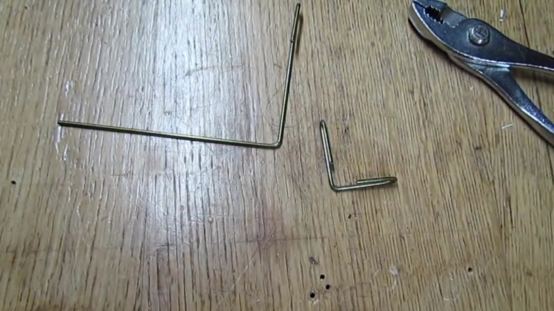 Dobre os 2 pedaços de arame com ângulo de 90°, dobrando uma ponta em gancho do pedaço maior e dobrando as 2 pontas do pedaço menor.
