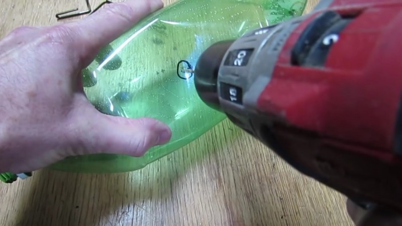 Coloque o prendedor ou o clipe na ponta do arame, para a garrafa não sair do lugar.