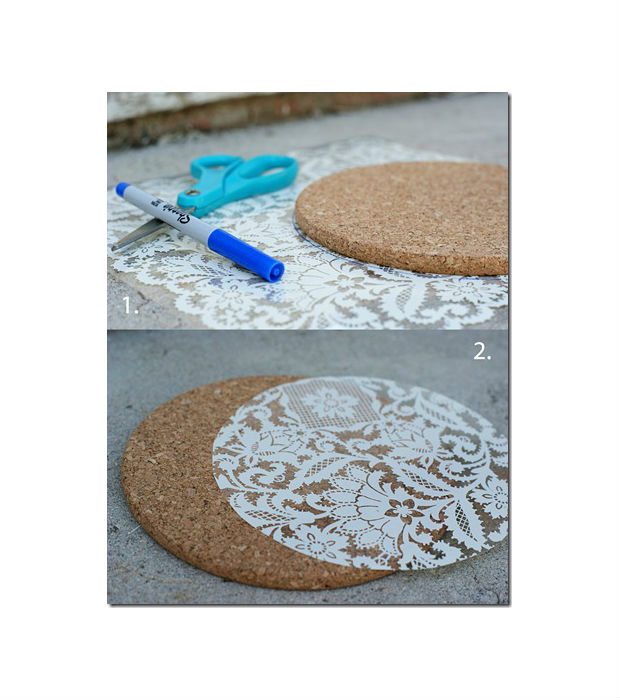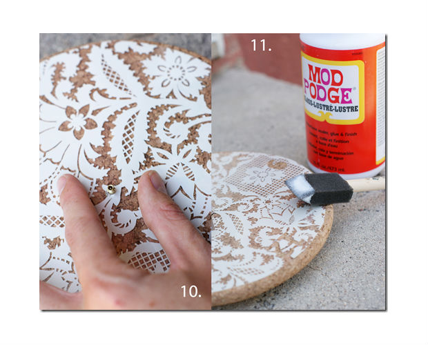 Cole a folha decorativa sobre a sua cortiça com cola Mod Podge.
