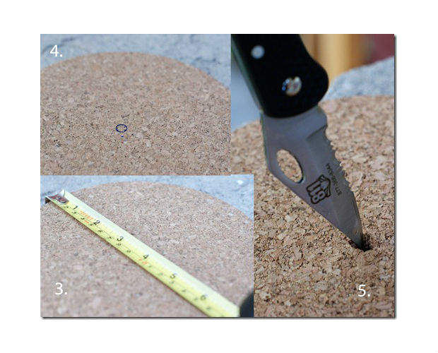 Faça um furo no centro da sua cortiça para poder instalar o relógio.
