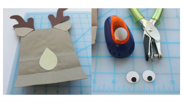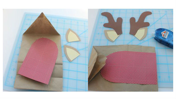 Utilize as sobras da sacola ou um papel cartão colorido semelhante para confeccionar as orelhas da sua rena as orelhas.