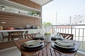 As sacadas podem também transformar-se em um ambiente muito agradável para as refeições. Algumas até comportam churrasqueiras.