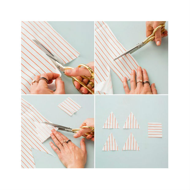 Corte quatro triângulos.