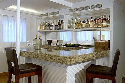 Além do toque de estilo no ambiente, o barzinho facilita o oferecimento de bebidas aos amigos, bem como facilita a interação das visitas.