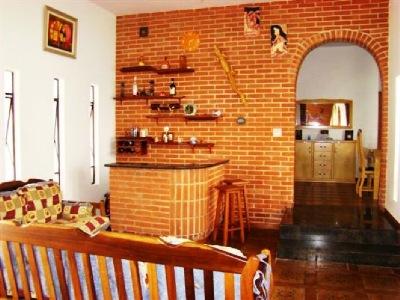 Sala de estar decorada com barzinho