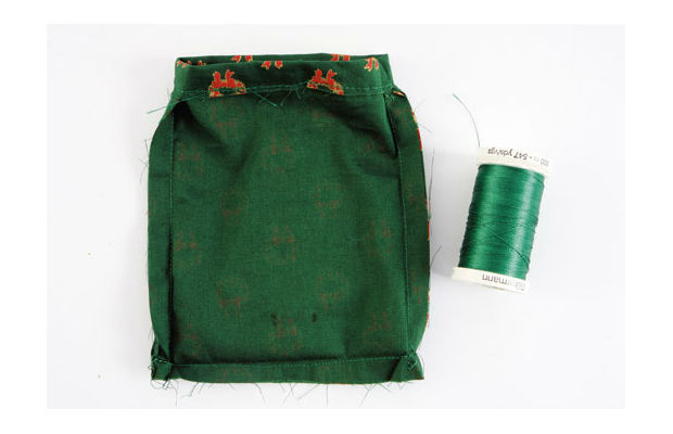 Adicione as duas partes do tecido de cor verde, de modo que funcione como o tecido de fundo, no lado direito, com o lado direito.