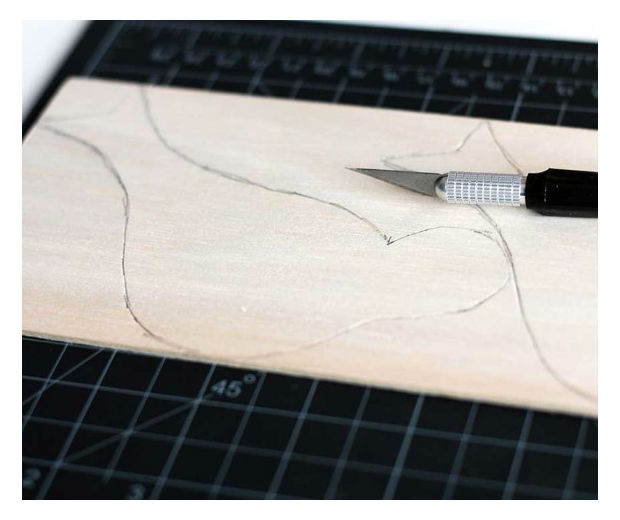 Transfira esse desenho do molde para a folha de madeira.