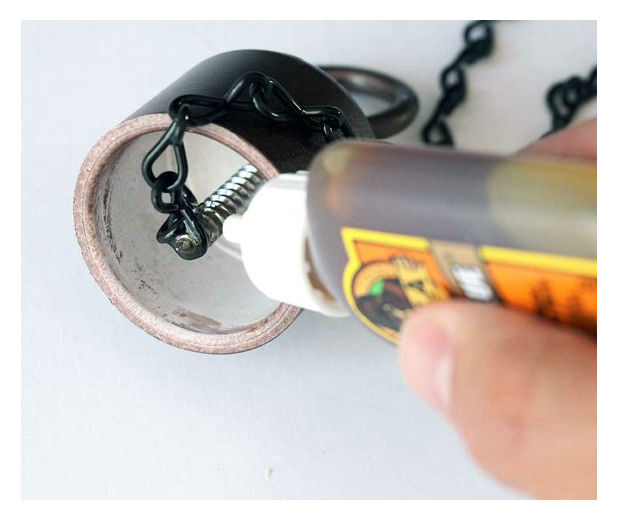 Cole um pedaço de corrente junto à parte de baixo do gancho da sua tampa de PVC.