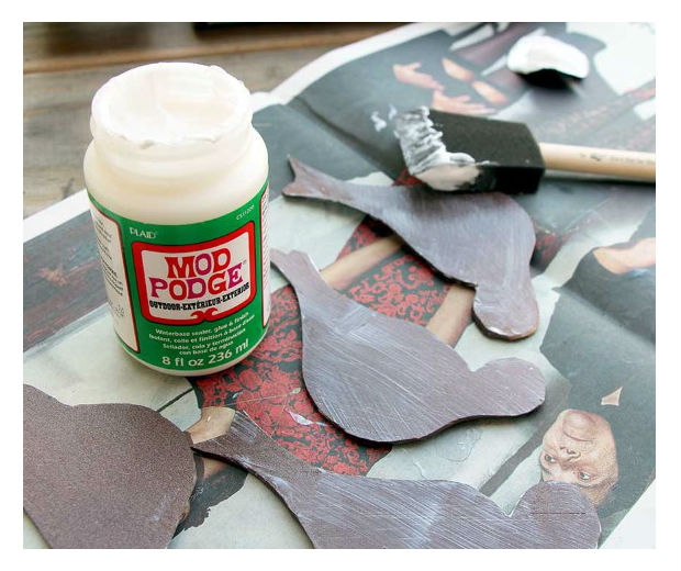 Aplique cola Mod Podge sobre seus enfeites para selar a sua pintura.
