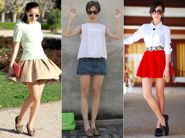 Os slippers de oncinha podem ser usados com saias, e as cores das roupas podem ser tanto neutras, como chamativas.