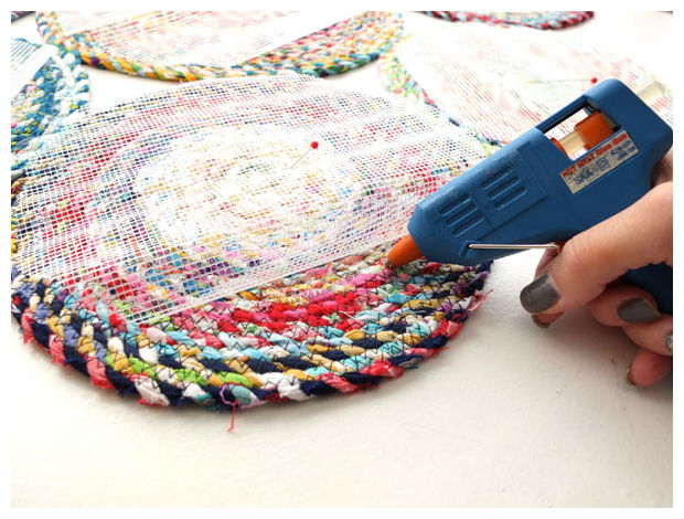 Junte esses discos e prenda-os, uns aos outros para dar forma ao tapete.