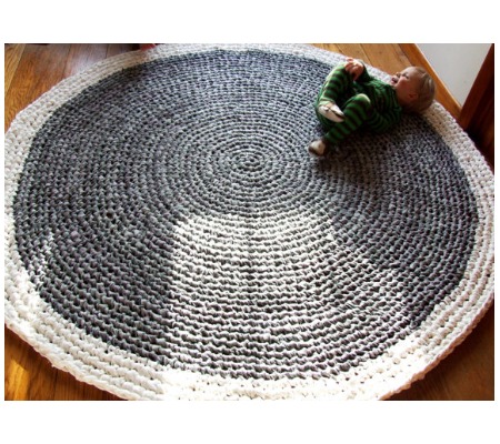 O barbante comum, com a cor cru, é o fio mais utilizado na confecção de tapetes, porém é possível utilizar linhas grossas coloridas e até tiras d e tecido para fazer o seu tapete de crochê. Mesclar cores de linhas também é interessante para quem busca uma peça de decoração multicolorida.