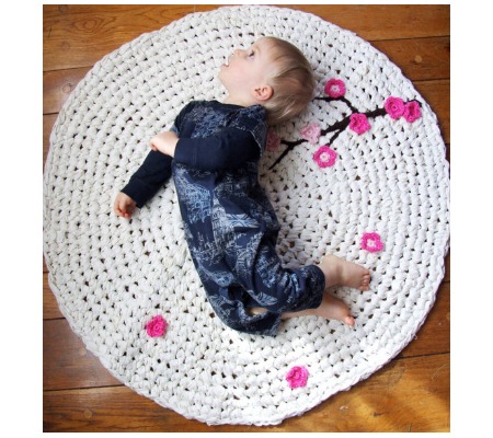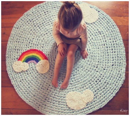 Para o quarto das crianças você pode fazer um tapete comum e aplicar bichinhos feitos de crochê ou aplicar flores feitas de crochê.