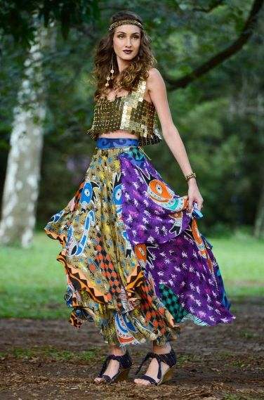 Saias longas estampadas também marcam o estilo cigano e continuarão pela próxima estação. E se você quiser deixar seu visual com pegada ainda mais étnica, invista em blusas ou acessórios dourados, que também remetem ao estilo cigano.