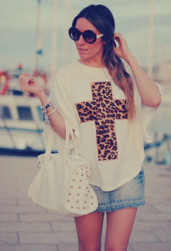 Se você optar por uma peça com uma cruz grande estampada na parte da frente (seja camiseta ou vestido) você deve estar ciente que a cruz chamará toda a atenção para esta área, por isso se você possuir seios grandes deve evitar a cruz gigante na parte superior do corpo.