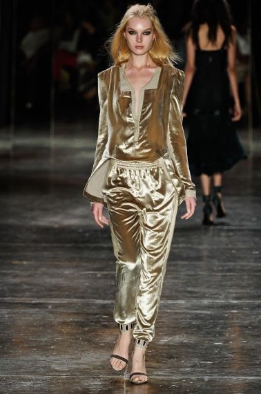 A textura e acabamento do veludo também estarão bem democráticos durante o inverno, indo desde o convencional veludo preto opaco; até os veludos coloridos (azul, vermelho, verde, laranja, mostarda, amarelo e roxo) e com acabamento com efeito molhado, brilhante ou metalizado (com tonalidades em dourado, prateado ou acobreado).