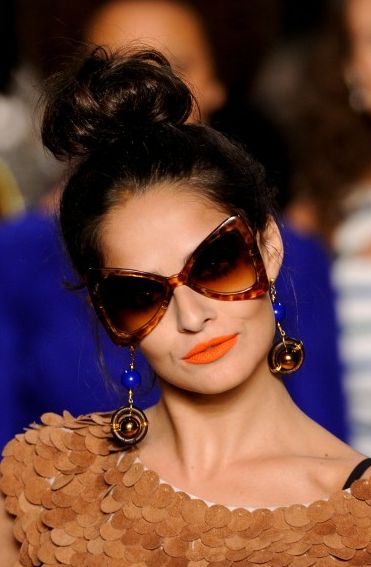 Os óculos de sol primavera-verão 2012 2013 seguem com armações gigantescas, em estilo máscara, mas, chegam com formas diferenciadas, como as formas geométricas. Óculos de sol espelhados e com formato gatinho também seguem para o próximo verão.