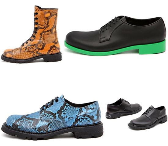 Os tênis e as botas também ganharam cores e estampas inusitadas e irreverentes, muitas vezes com solado com cor diferente do restante do sapato ou com detalhes rústicos.