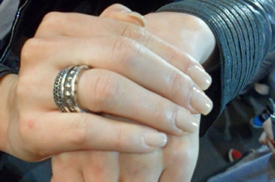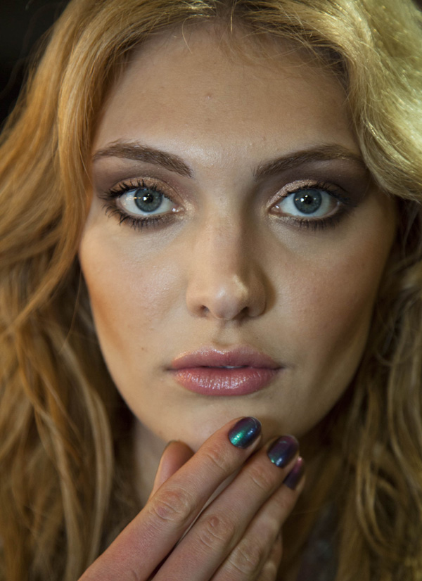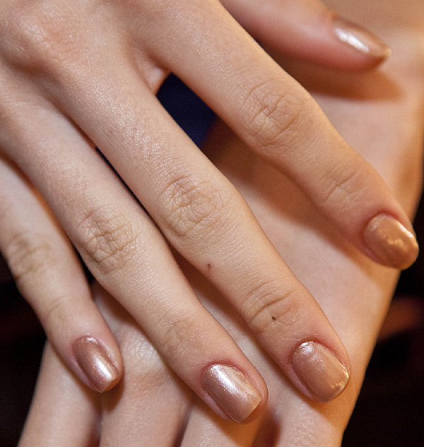 E como já foi citado, também estava presente no Fashion Rio os esmaltes metalizados, e não somente o tradicional dourado ou prateado, entram na dança agora as cores menos tradicionais, como o nude (e outros esmaltes claros), o azul, o vinho, marrom, café e vermelho; além dos esmaltes com efeito furta-cor e os holográficos. (Leia também sobre Tendências de Coloração para Cabelos Verão 2013).