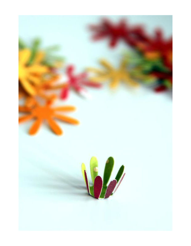 Dobre as pétalas das flores para cima.