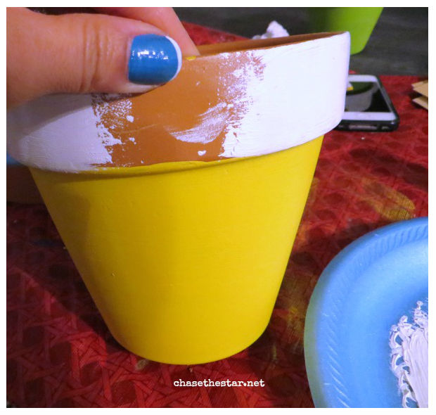 Primeiro, pinte os seus vasos de barro.