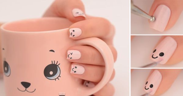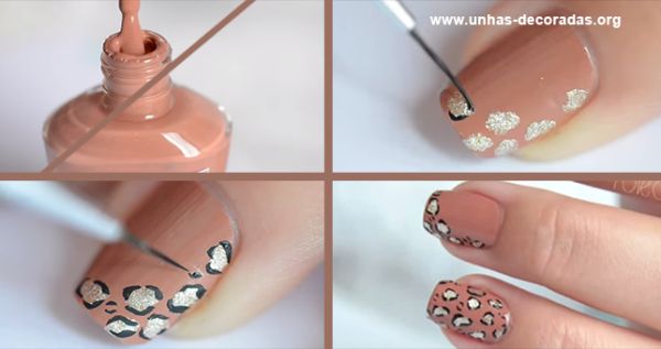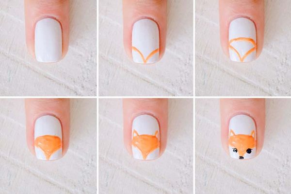 Pinte as unhas com a cor que será a cor de base. Deixe secar muito bem. Com o pincel fino faça duas curvas nas laterais da unha, com o esmalte laranja ou marrom. Una as duas pontas curvas com um risco também curvo. Preencha o espaço. Faça duas orelhas na parte de cima. Para finalizar, faça duas bolinhas com o esmalte preto para serem os olhos e uma bolinha preta para ser o focinho. E está pronto!