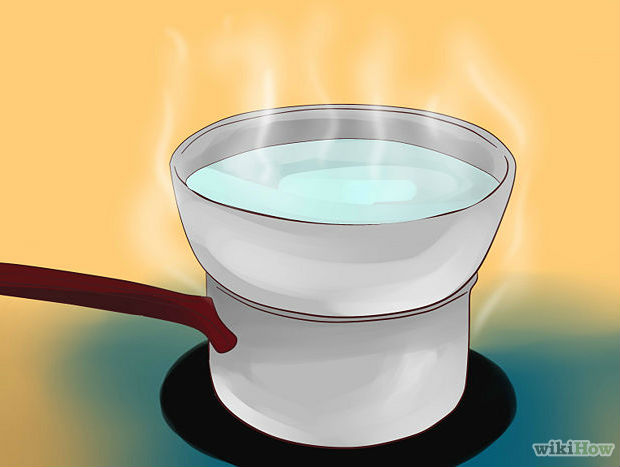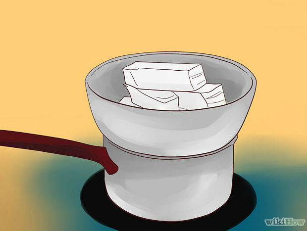 Logo, derreta-a em banho maria. Separe um pouco dessa parafina em outra vasilha, para fazer a espuma.