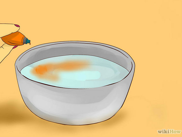 Quando a parafina estiver completamente derretida, pingue umas gotinhas de corante amarelo, em tom próximo ao da cerveja. Não se esqueça de deixas um pouco de parafina separado sem corante.