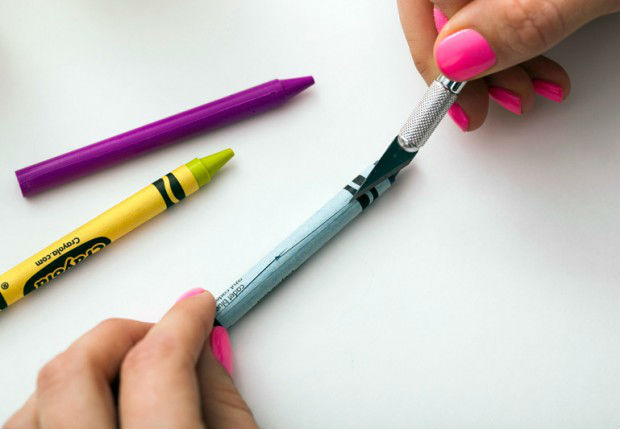 Agora, descarte qualquer tipo de embalagem do seu giz de cera e prepare-o para a confecção da sua vela colorida.