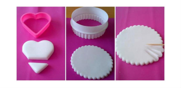 Esse círculo de foundant deverá ser prensado em suas dobras com um palito de dente, como na imagem acima.