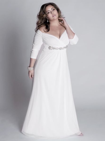 Mas as mulheres gordinhas não precisam usar somente vestidos longos de cor escura, o vestido longo branco ou com qualquer outra cor clara pode também realizar o efeito alongador e emagrecedor se contiver modelagem império (com a saia começando logo abaixo dos seios), saia evasê e decote em “V” ou canoa, para as gordinhas com ombros estreitos e colo bonito.